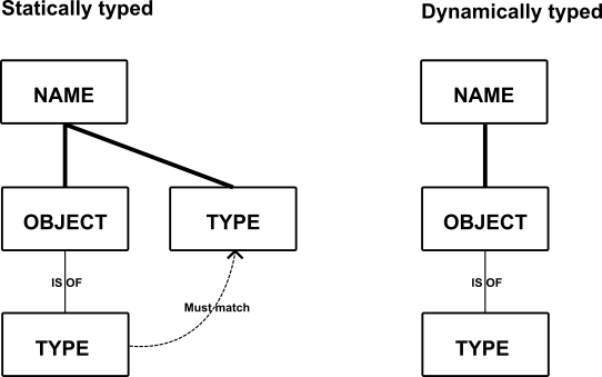 In a dynamically typed language, every variable name is (unless it is null) bound only to an object.